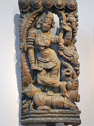 The Yamuna starts from the southwestern Banderpooch peaks in Uttarakhand and is the second-largest tributary river of the Ganga and the longest tributary in India. In Hindu mythology, the Yamuna, also called Yami, is considered a goddess and she is the daughter of Surya and his spouse Saranyu and the sister of Yama. She is also the consort of Krishna and one of Ashtabharya, as Kalindi. She is depicted as a dark complexed woman and her mount is a tortoise. She carries a kalasha and lotus.